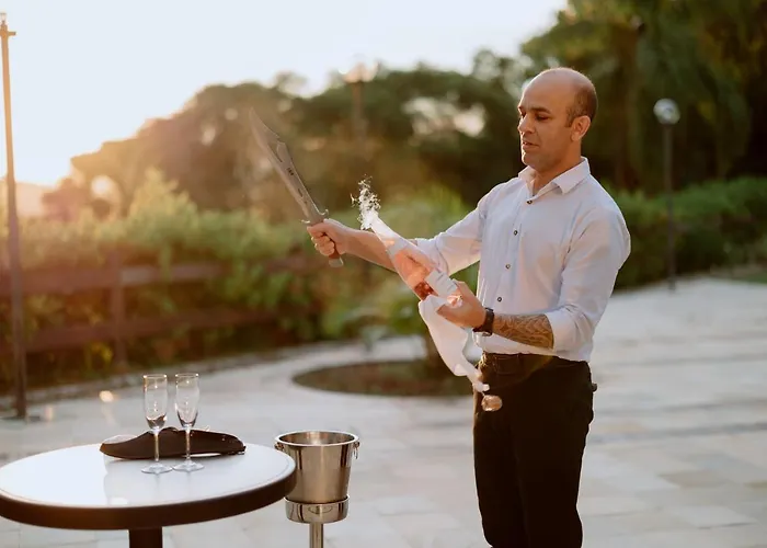 Este alojamento 5 estrelas está situado a aproximadamente 10 minutos das Piscinas naturais quiosque. Este estabelecimento está a uma distância moderada Oceano Atlântico.