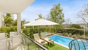 Die geräumigen Hotelzimmer sind mit einem Safe, einem Balkon und einer Terrasse sowie mit einer Mikrowelle, einer Kaffee-/Teemaschine und einem Elektroherd ausgestattet. In einigen Zimmern gibt es ein privates Badezimmer mit einem Haartrockner und einer Hydromassage-Badewanne. Die Badezimmer verfügen über eine Hydromassage-Badewanne und eine Sauna. Hier findet man auch ein Haartrockner und Toilettenartikel. In den Zimmern der Unterkunft hat man einen schönen Blick auf den Pool.